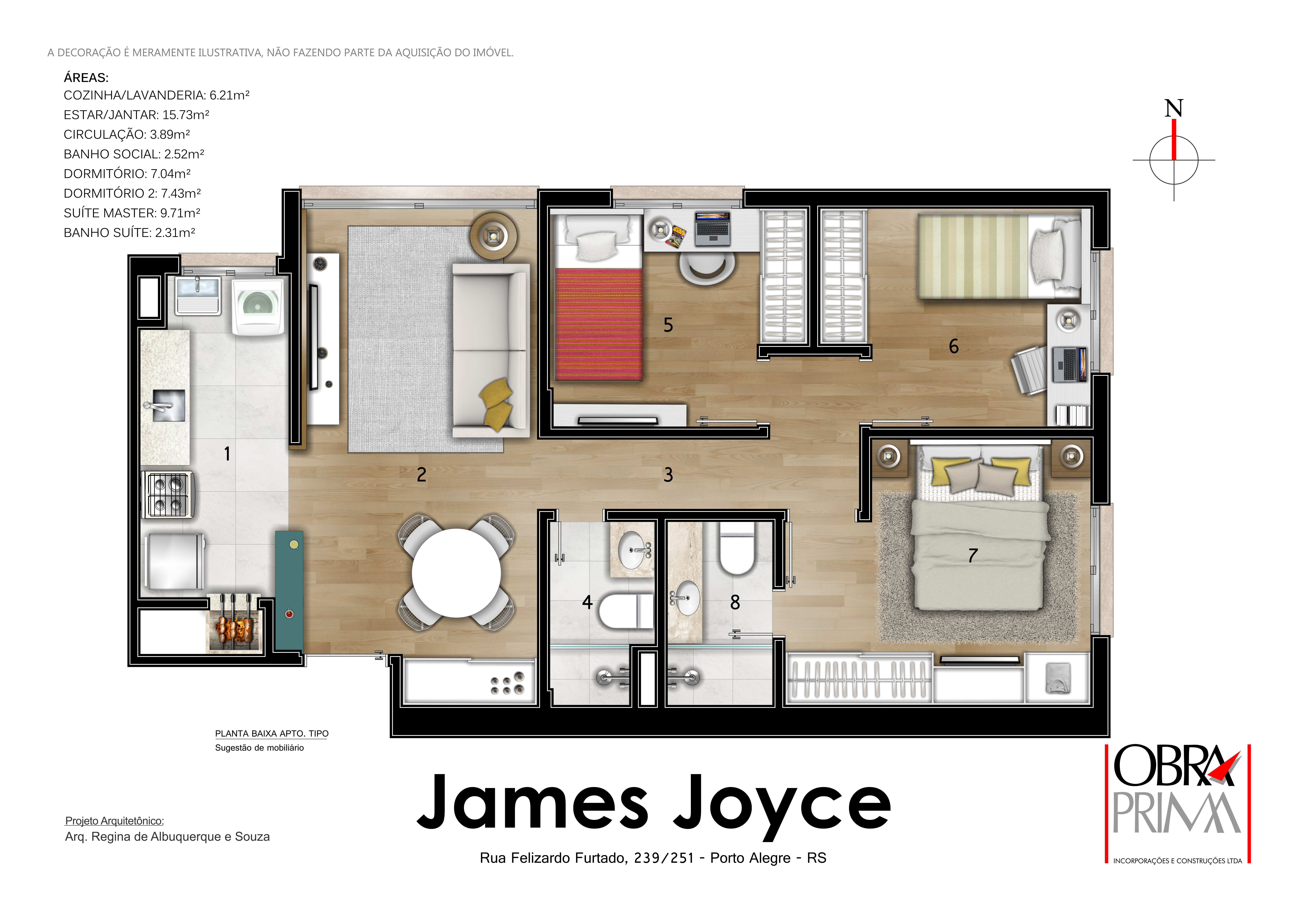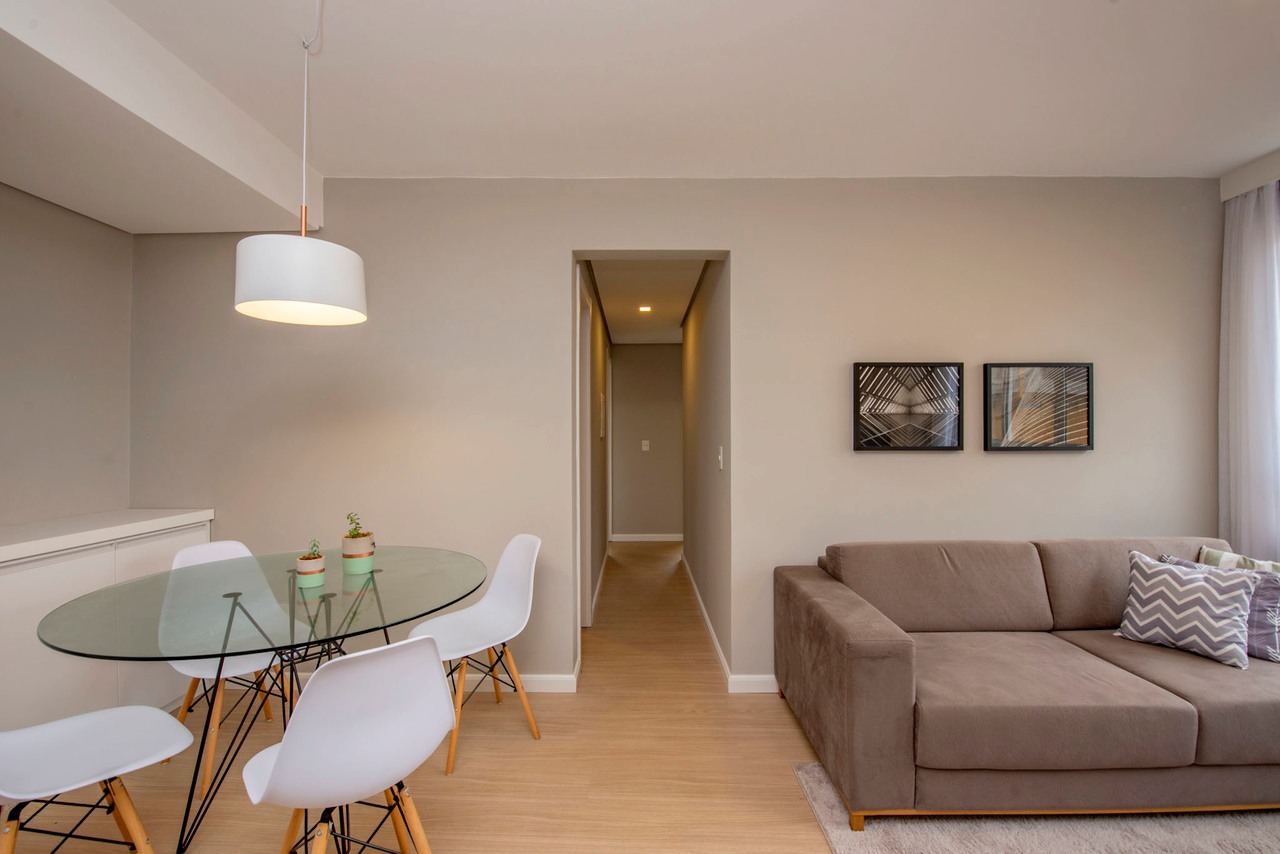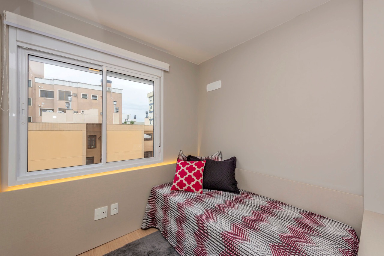 - Apartamentos com 3 dormitórios, sendo 1 Suíte no Dormitório do Casal, Sala de Estar/Jantar, Banheiro Social e Cozinha Americana com Churrasqueira