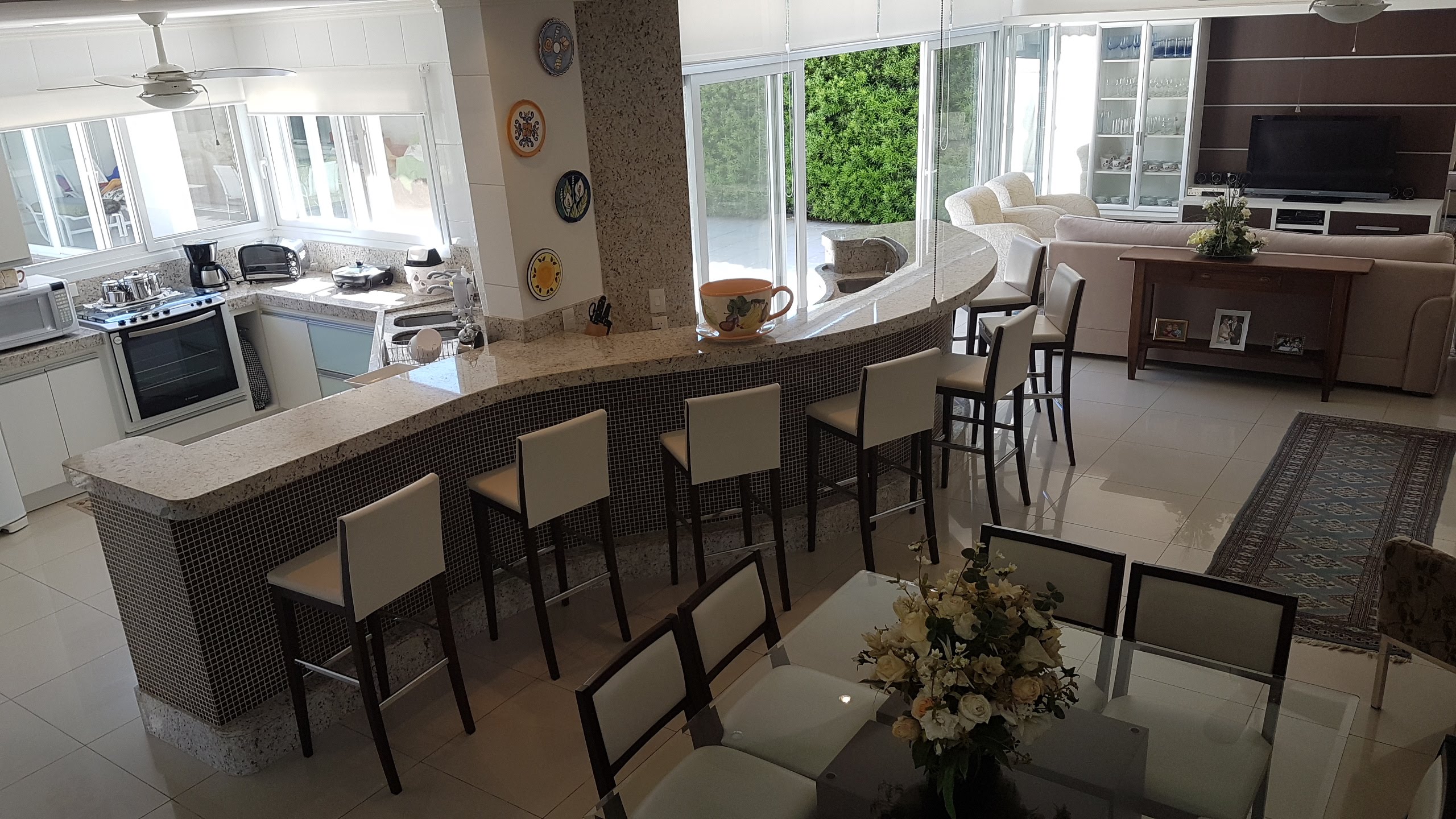 - Churrasqueira Rotativa, c/Amplo Balcão de Granito para 7 Lugares